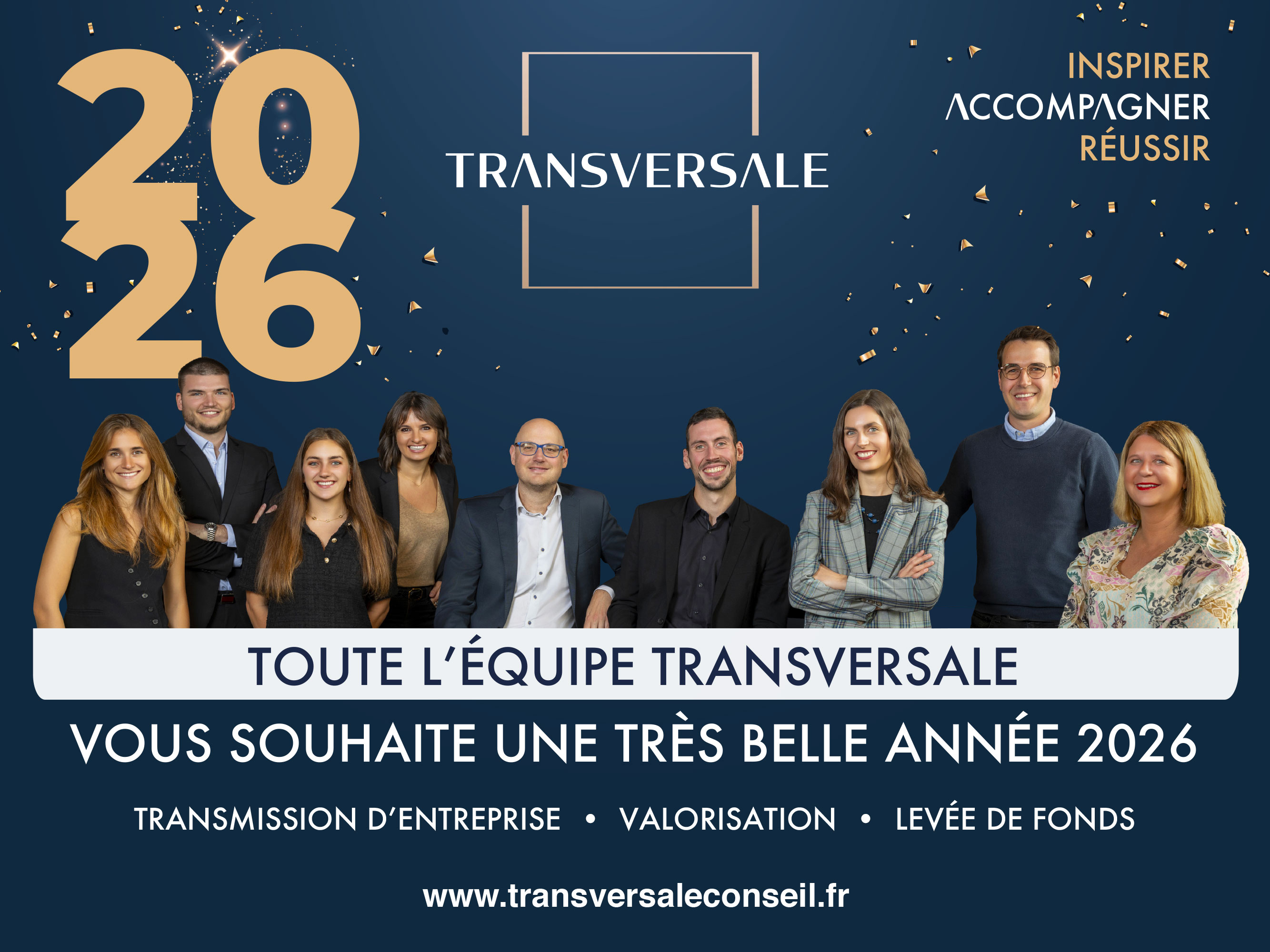 Cap sur 2026 avec Transversale ! Nous vous souhaitons une excellente année à nos clients, partenaires et à tout notre écosystème. Nous abordons 2026 avec beaucoup d’enthousiasme et restons pleinement mobilisés à vos côtés sur vos projets de cession d’entreprise, acquisition, valorisation et levée de fonds.